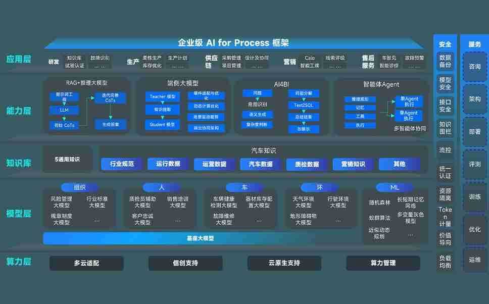 端到端的一站式AI工作空间深度融合了从企业战略规划到日常经营的全流程业务板块,,,定向解决车企内部领域多、、部门多、、、、链条长、、场景碎片化等难题,,,,支持车企快速构建以AI为核心的生产力写作体系,,实现任务执行与AI能力的无缝集成与交互
