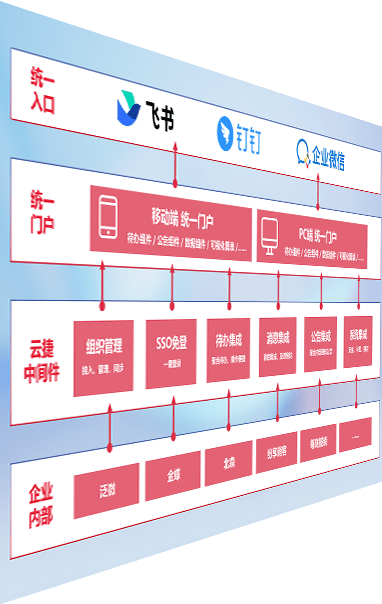 对协作平台提供支持服务,,支持企业应用与协作平台对接,,包含组织同步、、、、消息集成、、待办集成等。。。支持目前主流的协作平台:钉钉、、、企微和飞书。。。。